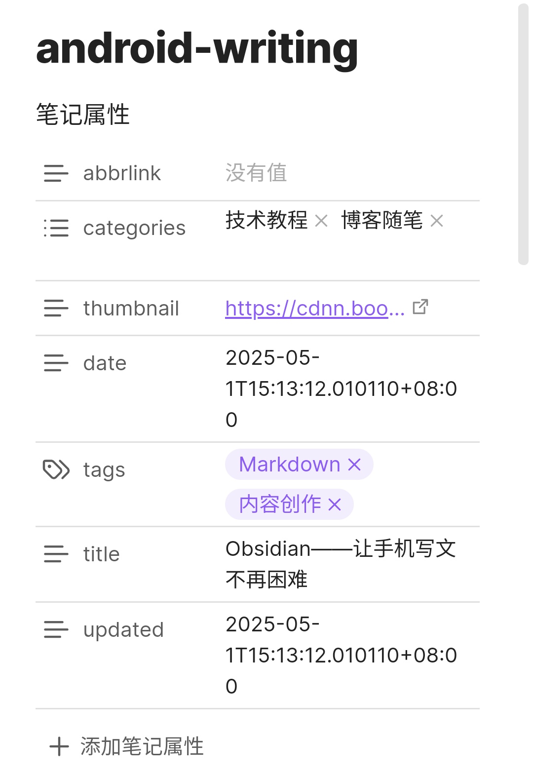 后面我们就可以使用Obsidian配合使用了,Obsidian还支持笔记属性,超好用哦。