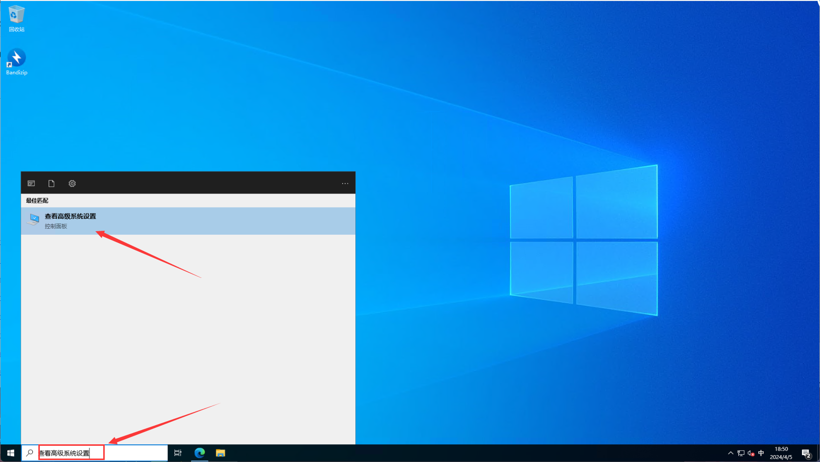 在搜索框搜索“查看高级系统设置”,在其他版本的Windows上可能是“高级系统设置”,请注意识别