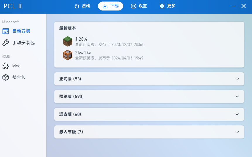 下载后双击“Plain Craft Launcher 2.exe”即可。可在PCL2中安装MC、Mod、Fabric、Forge、Optifine等等。