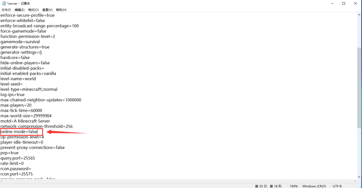 如果你没有正版账号,请修改“server.properties”文件中的online-mode为false。