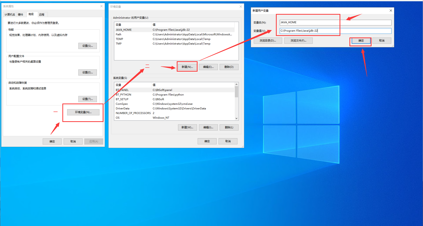 变量值为你的Java安装路径,如果你安装时未选择安装路径,请填写 C:\Program Files\Java\jdk-22