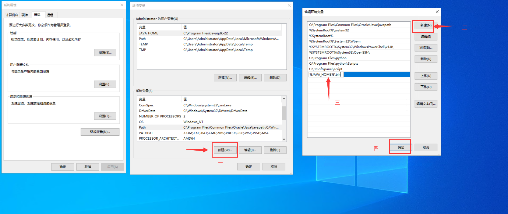 双击系统变量中的Path变量(如未找到请向下滑动),新建一个环境变量:%JAVA_HOME%\bin